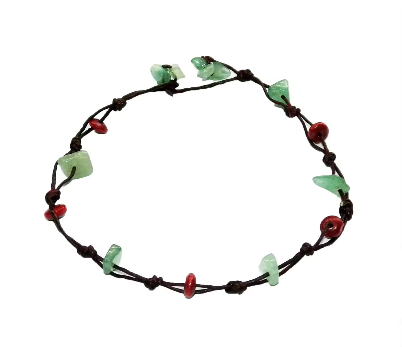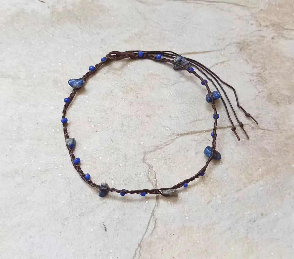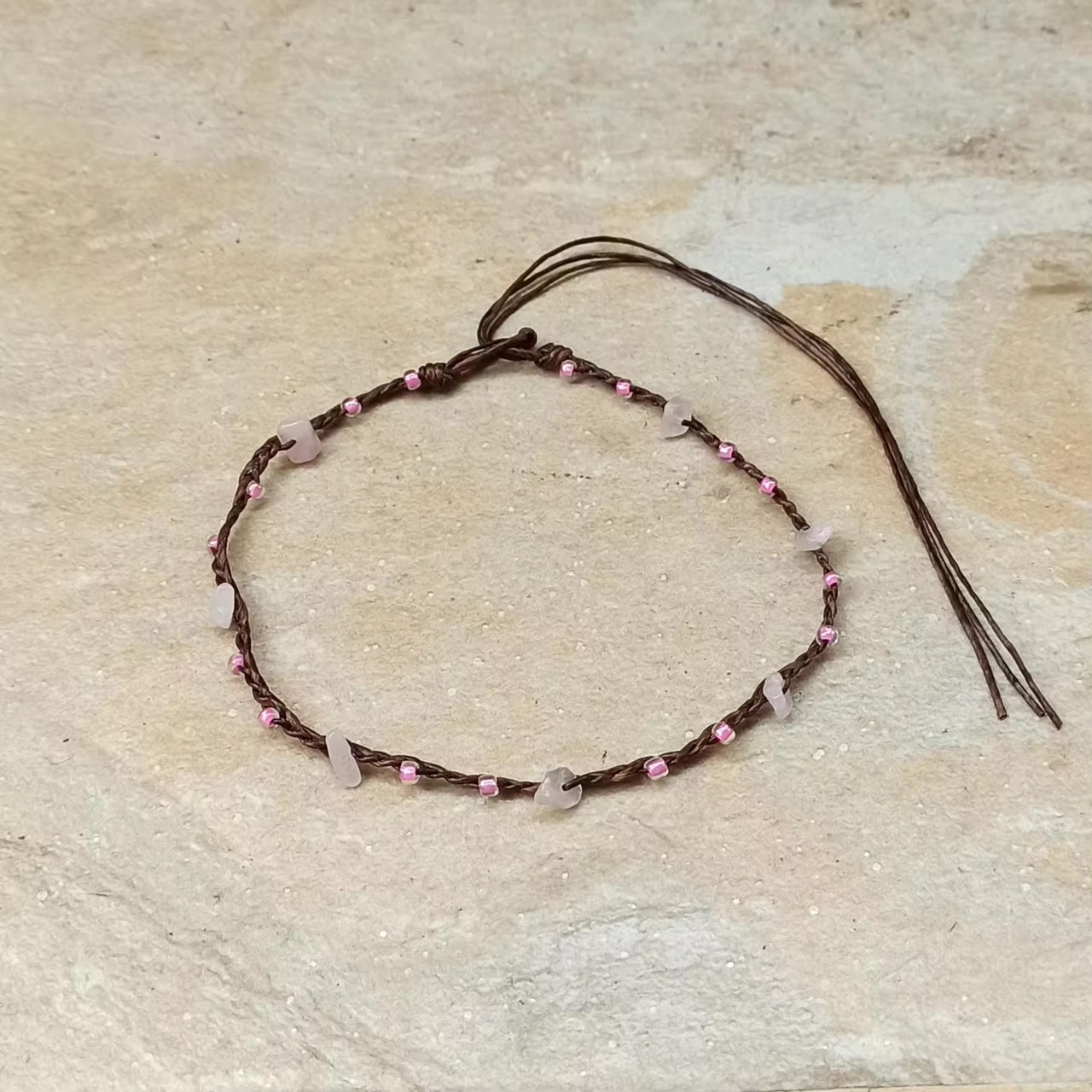 สร้อยข้อเท้าเชือกเทียน แต่งลูกปัดไม้ หินธรรมชาติเป็นแบบผูก สามารถปรับตามขนาดข้อเท้าได้ตามต้องการ ตั้งแต่ 9.5 นิ้ว ถึง 11 นิ้ว